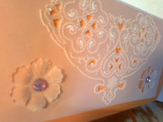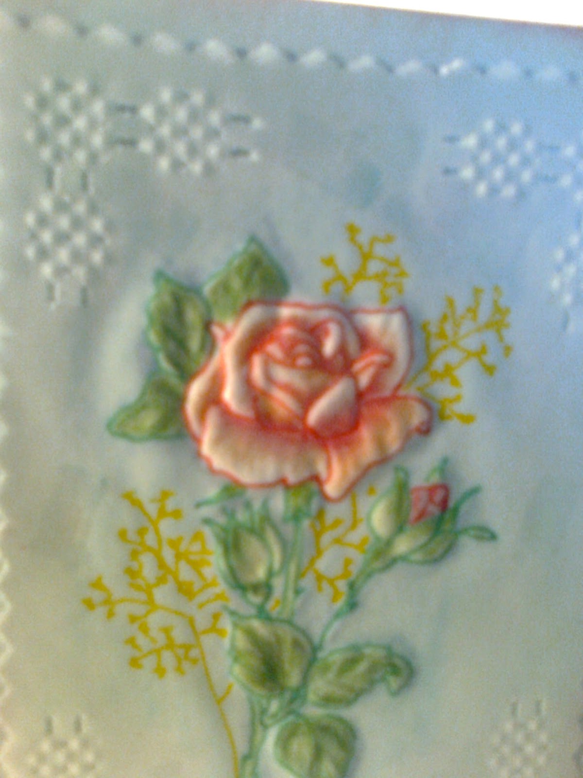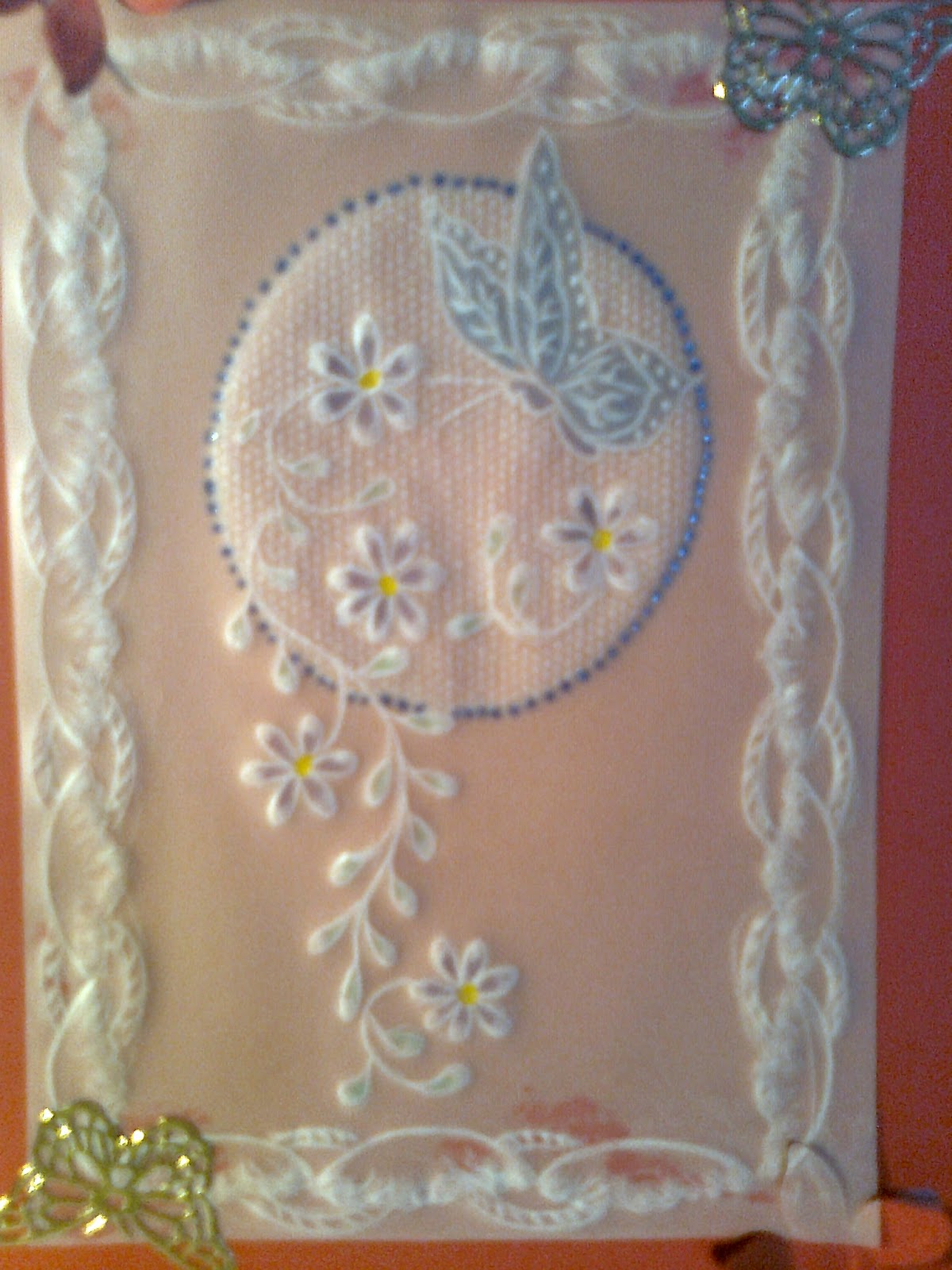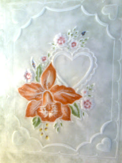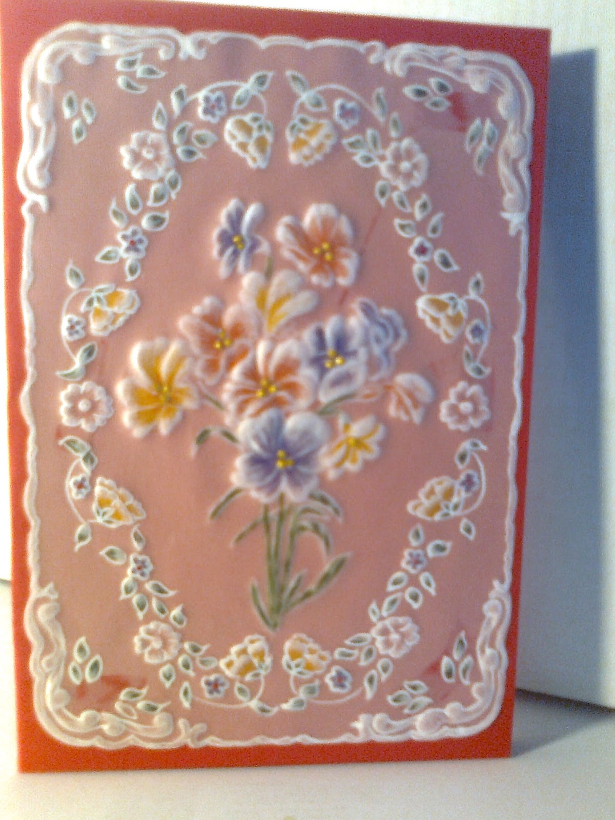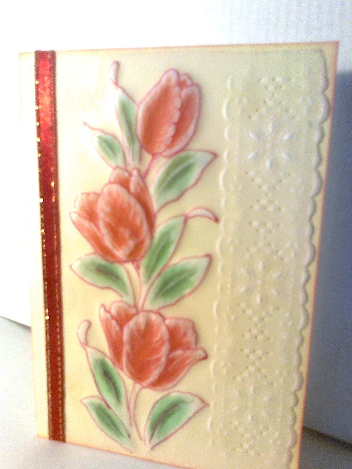 Už ani neviem odkiaľ mám tento námet, mám rada orchidei . Je urobená pergamano technikou nalepená na mramorovom papieri. Na tej fotke to až tak nevyzneje, musím vyšpekulovať ako to fotiť.